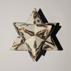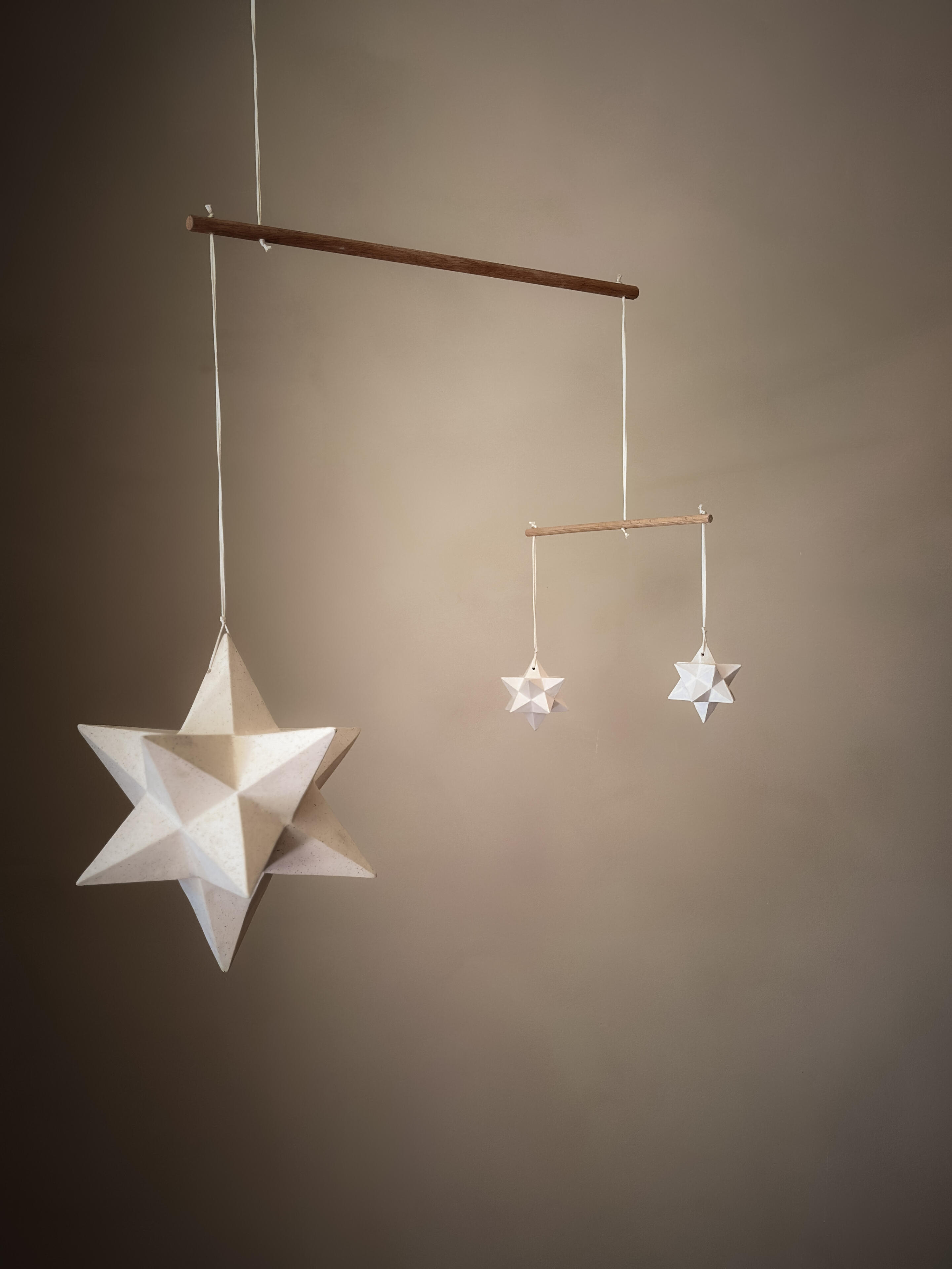 These 9 small stellated dodecahedrons were created using the slipcast mould from my previous project 'In Quiet Orbit'. They were decorated using Obvara, a technique where you fire the pieces in a raku kiln to around 1000c and then dunk them in a mixture of water, flour and yeast which has sat for a few days. I am fascinated by the variation in the resulting organic patterns, which form around the vertices and edges of the stars in a matter of seconds.